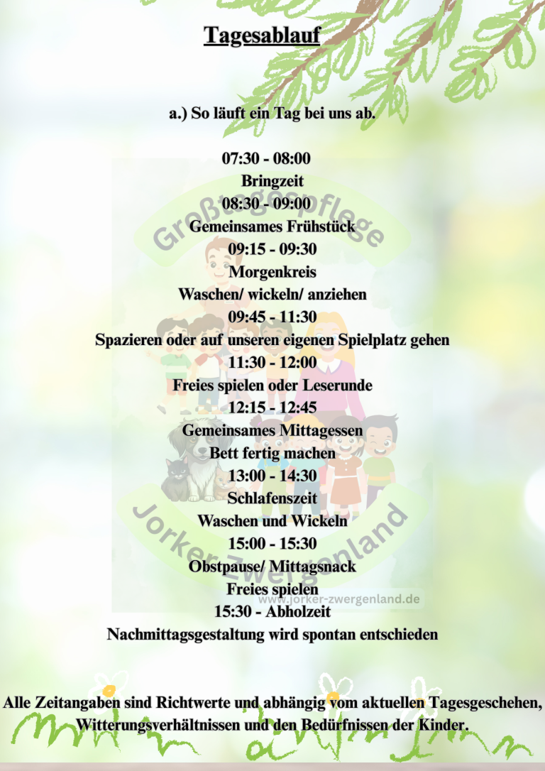 Wir bieten eine verlässliche Betreuung von Montag bis Freitag